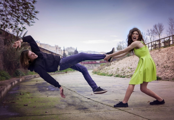 Если женщина кричит на детей, мечет предметы и вообще ведет себя опасно, можно брызнуть ей в лицо водой, ущипнуть или отзеркалить, повторив ее мимику и вопли. Истерика кажется неуправляемой, но настоящего аффекта здесь не происходит, и поток эмоций легко сбить чем-то неожиданным.